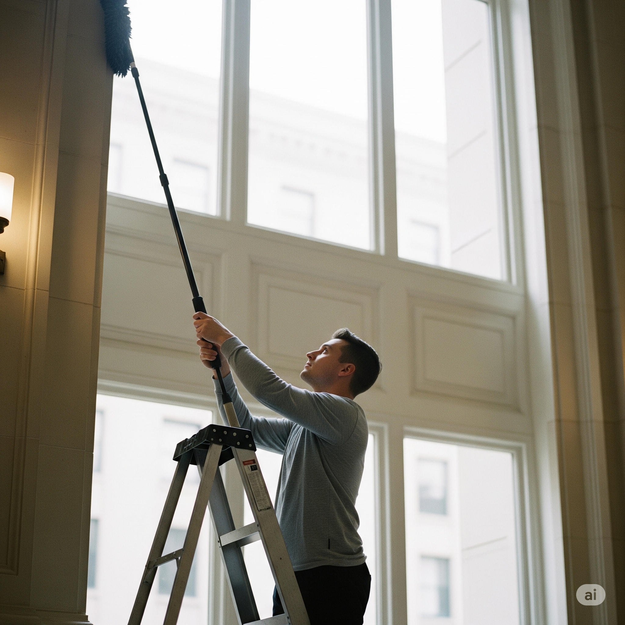 High-to-low dusting of all ceilings, vents, walls, and fixtures.